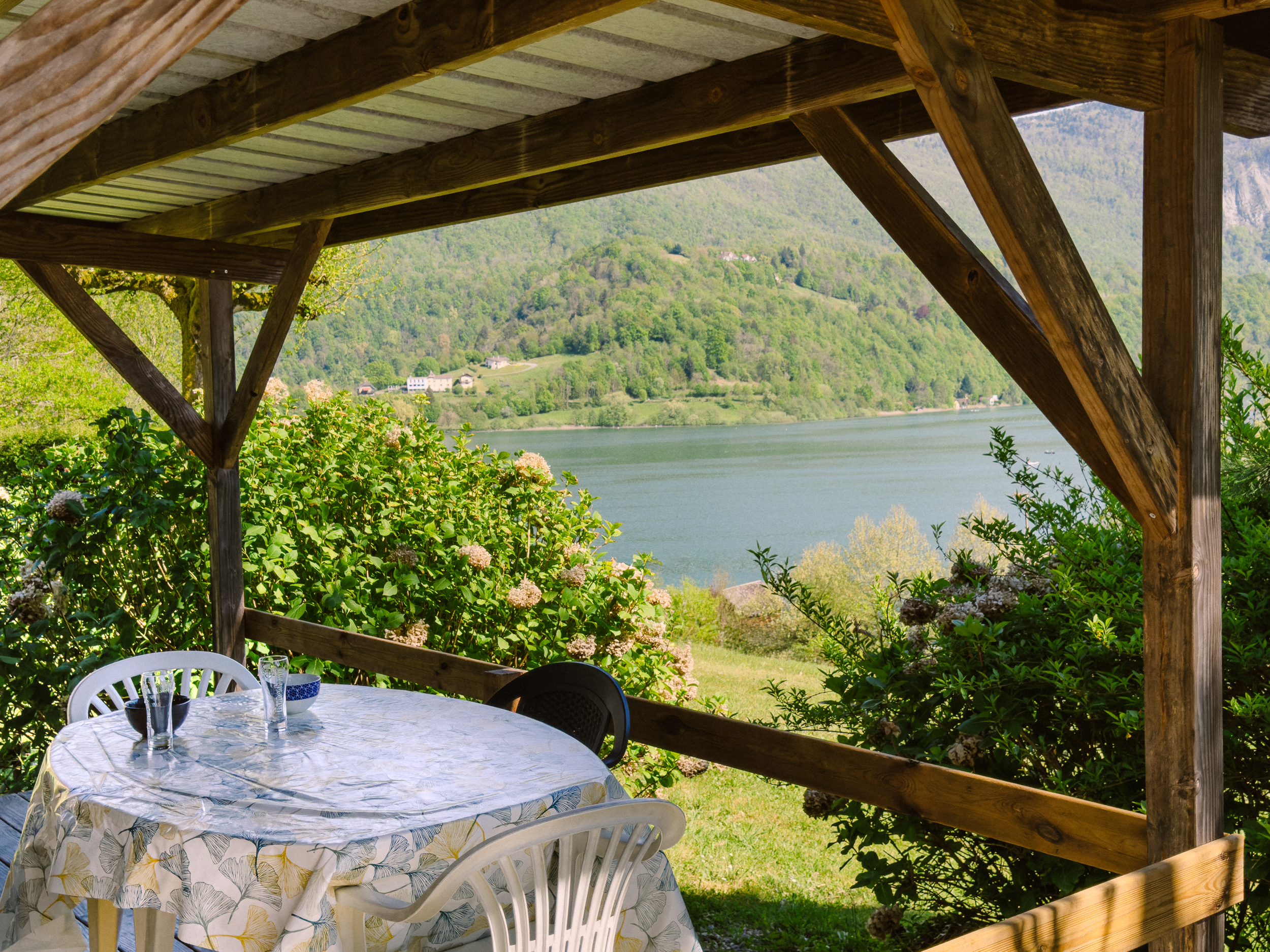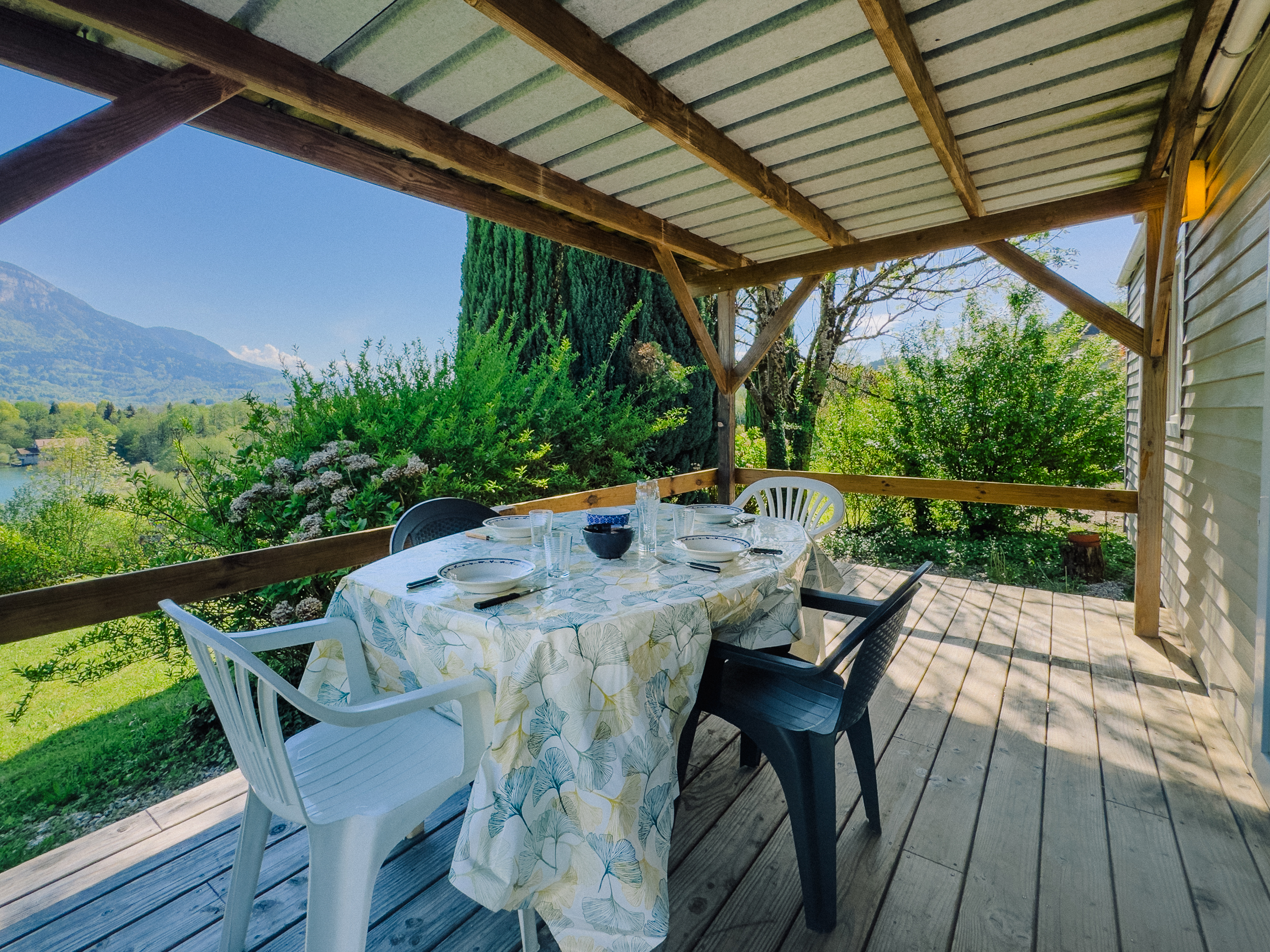 - Une terrasse bois couverte : tables, chaises de jardin et barbecue charbon (sur demande).